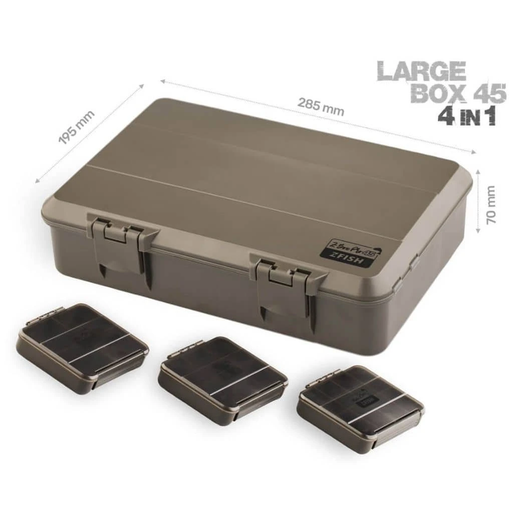 Prakticky riešené veko organizéra obsahuje uzatvárateľné priehradky a zároveň aj kompletný zásobník na náväzce. Ten je vybavený hrazdou pre háčiky, penovou časťou s rozmermi 210 × 100mm, desiatimi aretačnými špendlíkmi a integrovaným pravítkom, ktoré uľahčuje presné viazanie náväzcov.